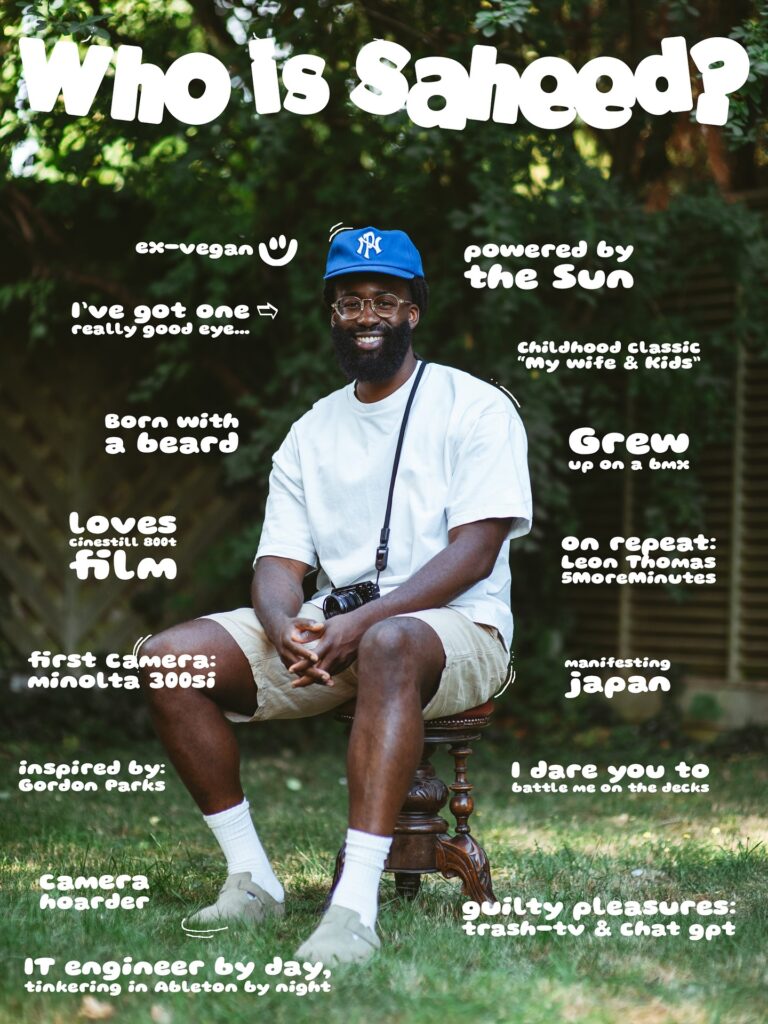 Saheed steps back into view with a quiet confidence, the kind that comes from years of chasing what feels right. He’s the London photographer who frames moments like they’re already memories, the producer who layers beats in the late hours, and the DJ who knows exactly when to drop the needle. Through @explormotion, he’s pulling all of it together into one clear lane: real stories told through images, sound, and motion.